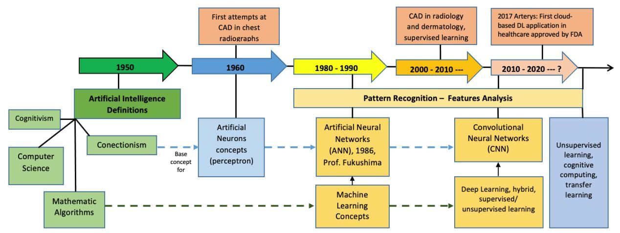Figure 1. Evolution of artificial intelligence. The development of the concepts machine learning and deep learning within medicine.